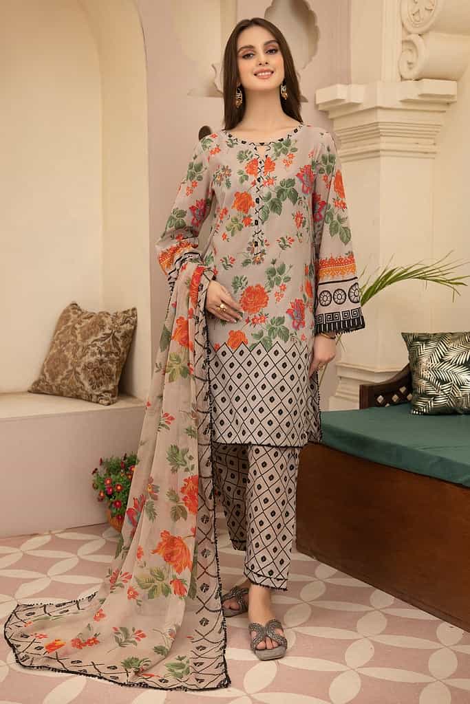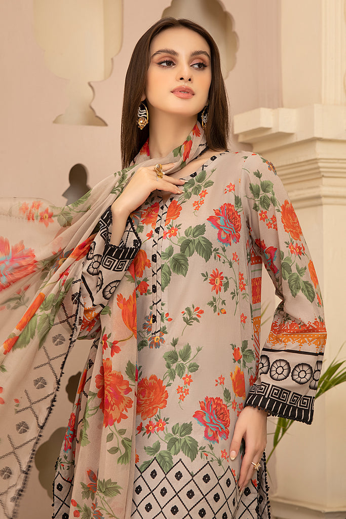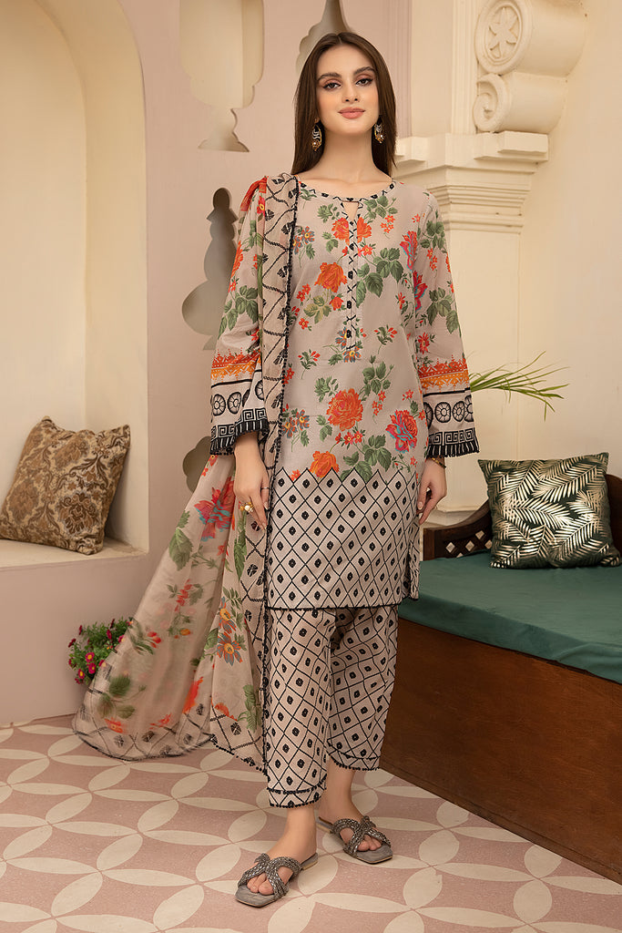 - Lawn Digital Grey Floral Printed Shirt