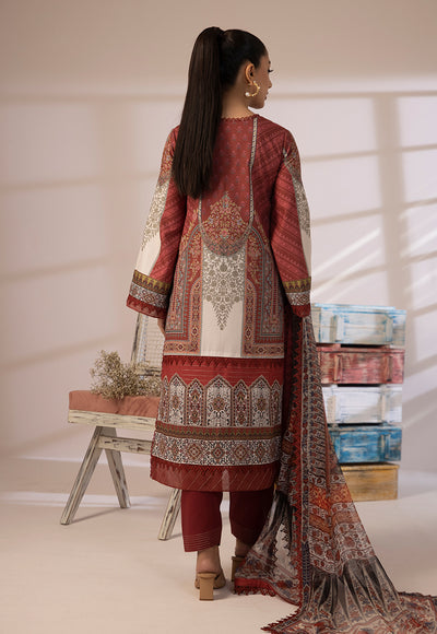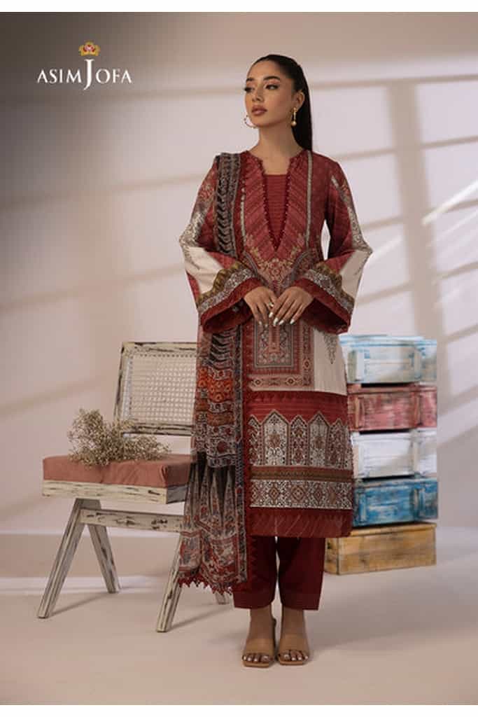 Get your hands on this chic and vibrant red number from ‘Asim Jofa Prints’. This design will please you with its spellbinding pattern, meticulously designed to capture attention. The cambric shirt and chiffon dupatta exude radiance, accentuating your every move with its captivating prints. A perfect statement that deserves to be in your wardrobe this summer season!