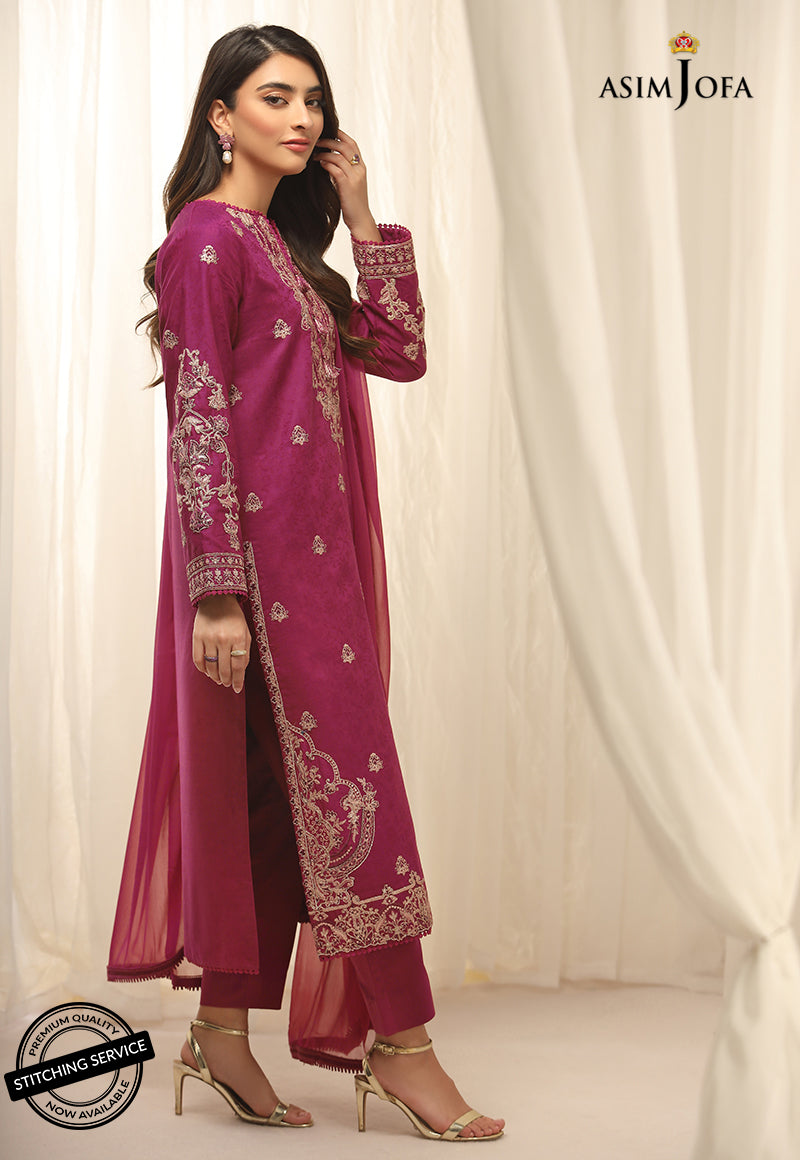 Brighten up your wardrobe with embroidered hues of deep pinks paired with chiffon dupatta.