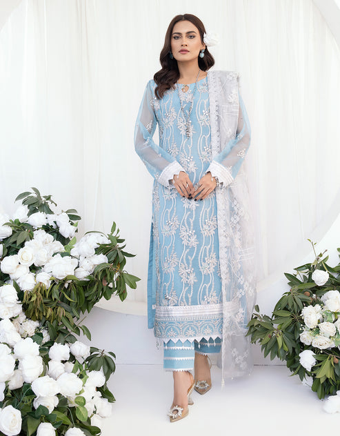 ORGANZA EMBROIDERED HAND MADE FRONT BORDER.