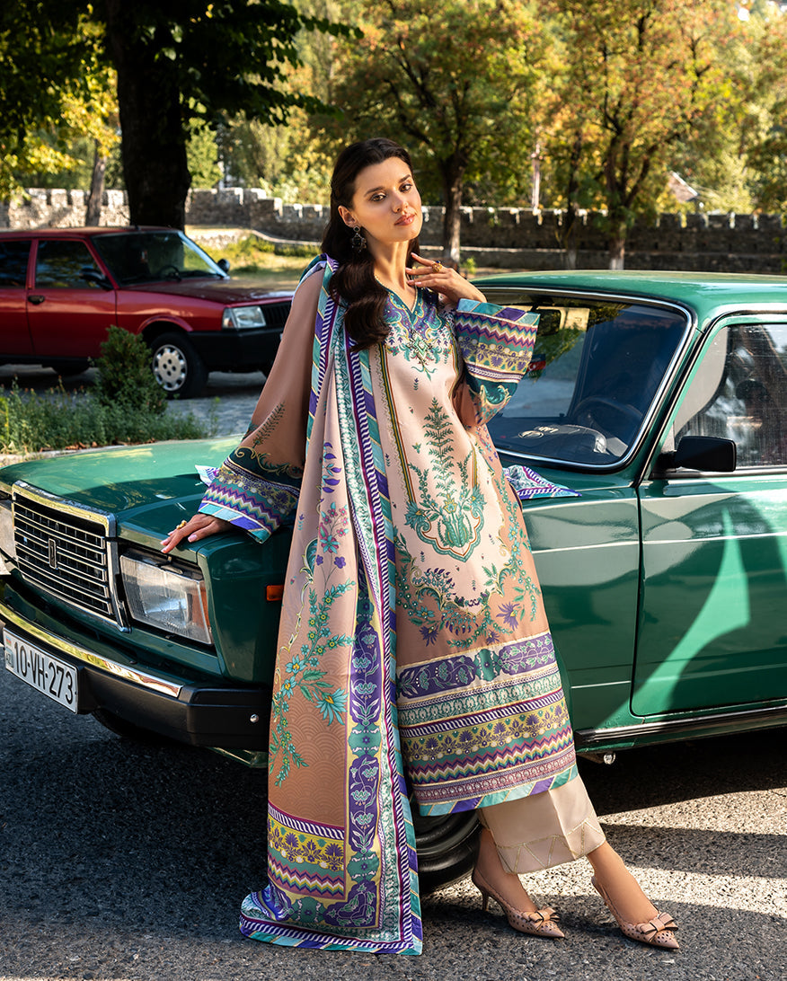 • Printed embellished raw silk front