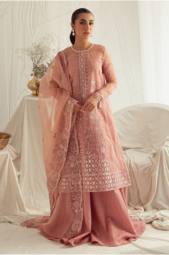 CASHMERE HAZE-4PC: ORGANZA EMBROIDERED SUIT|| LUXE ATELIER-23 || CROSS STITCH