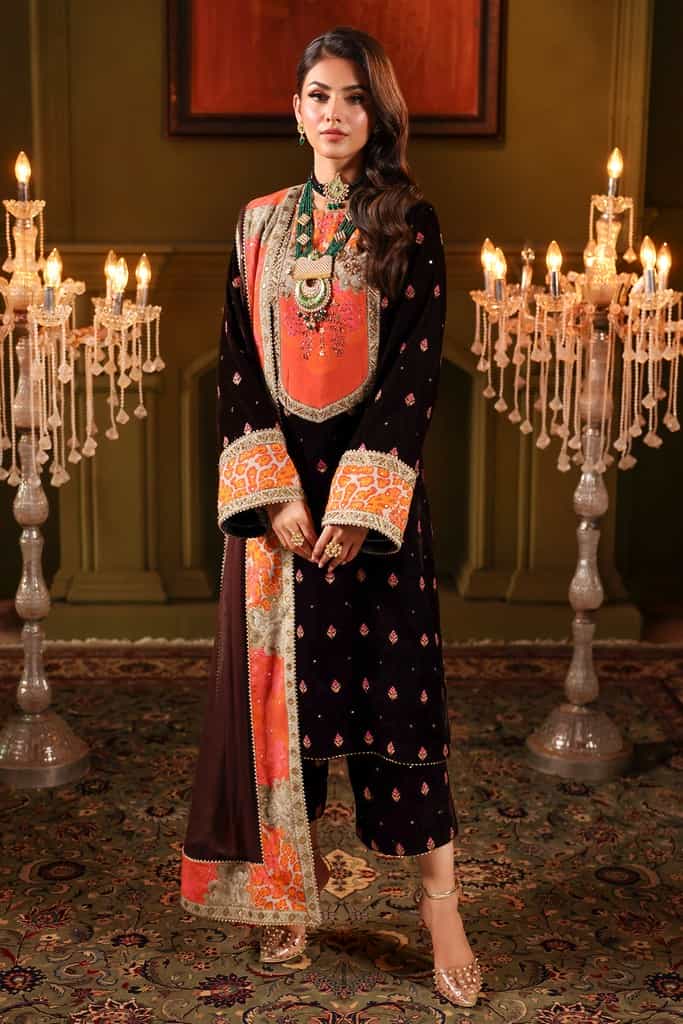 Embroidered Dyed Velvet Front & Sleeves 2 Meter