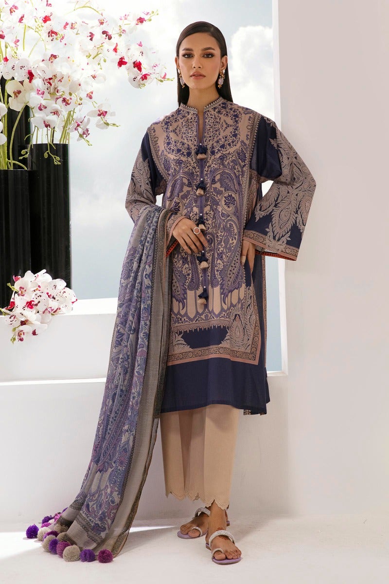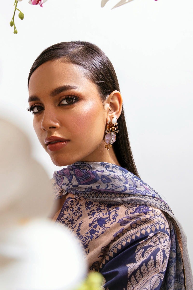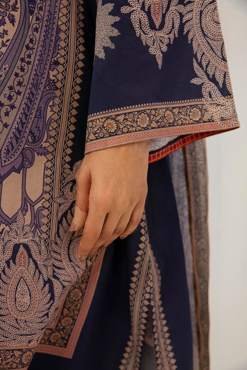 Ethnic beauty blooms in this digital printed shirt, embraced by a matching cross slub dupatta, and grounded by earthy beige pants.