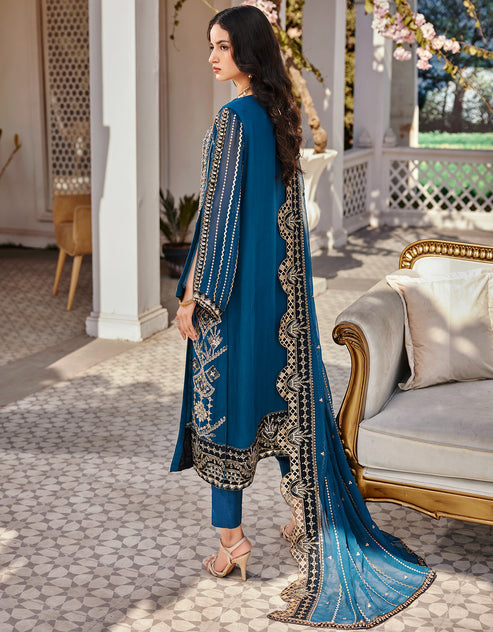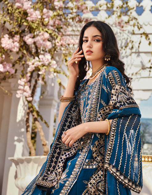 Chiffon  Embroidered Front Right and Left Panels with Multi sequins work.
