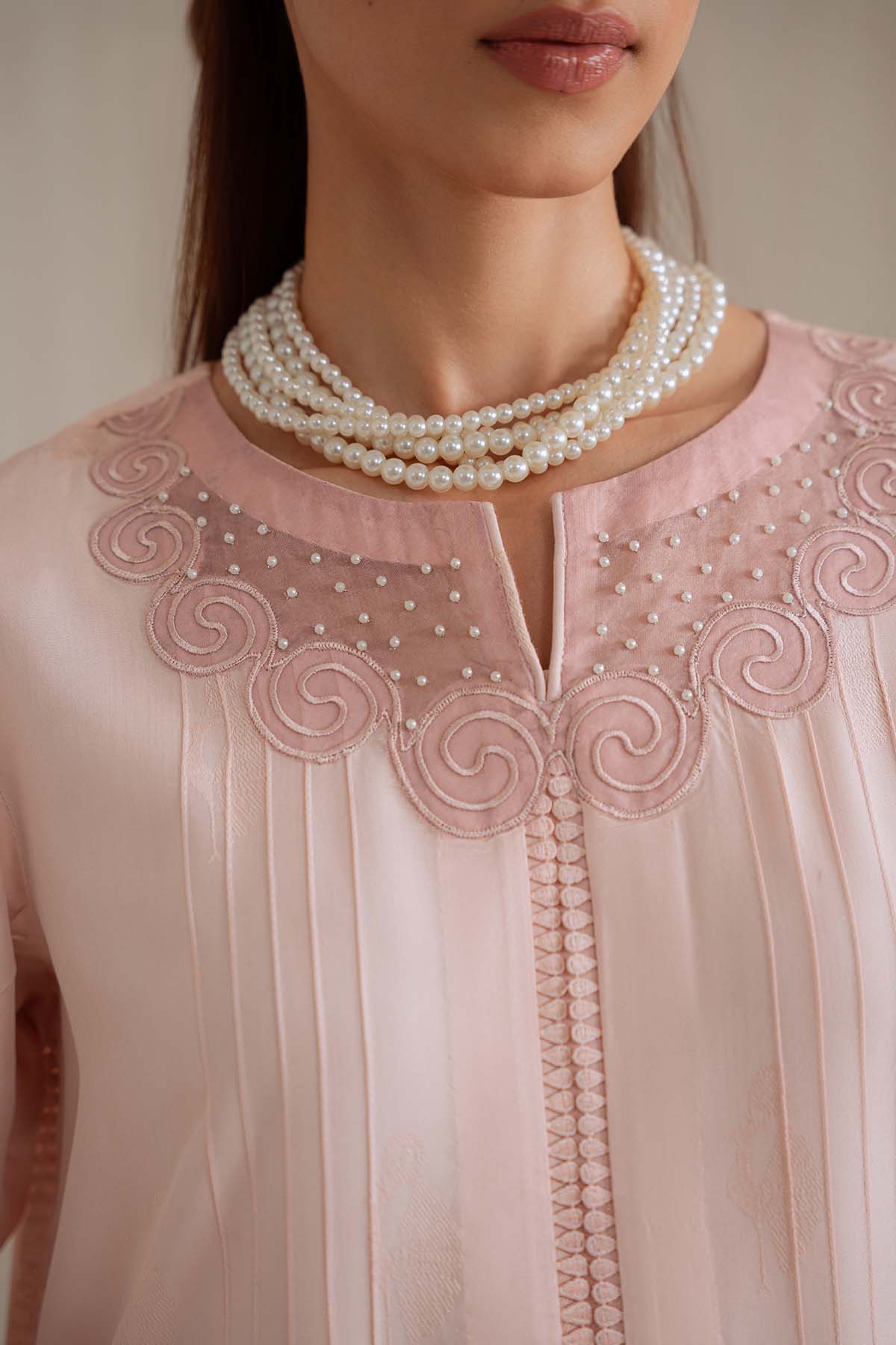 - Embroidered And Embellished Linen Jacquard Shirt Paired With Linen Jacquard Trouser