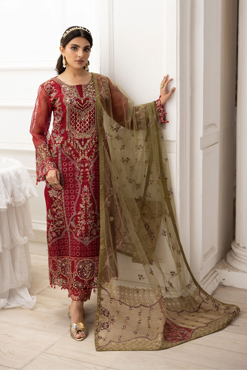 Embroidered Net Dupatta