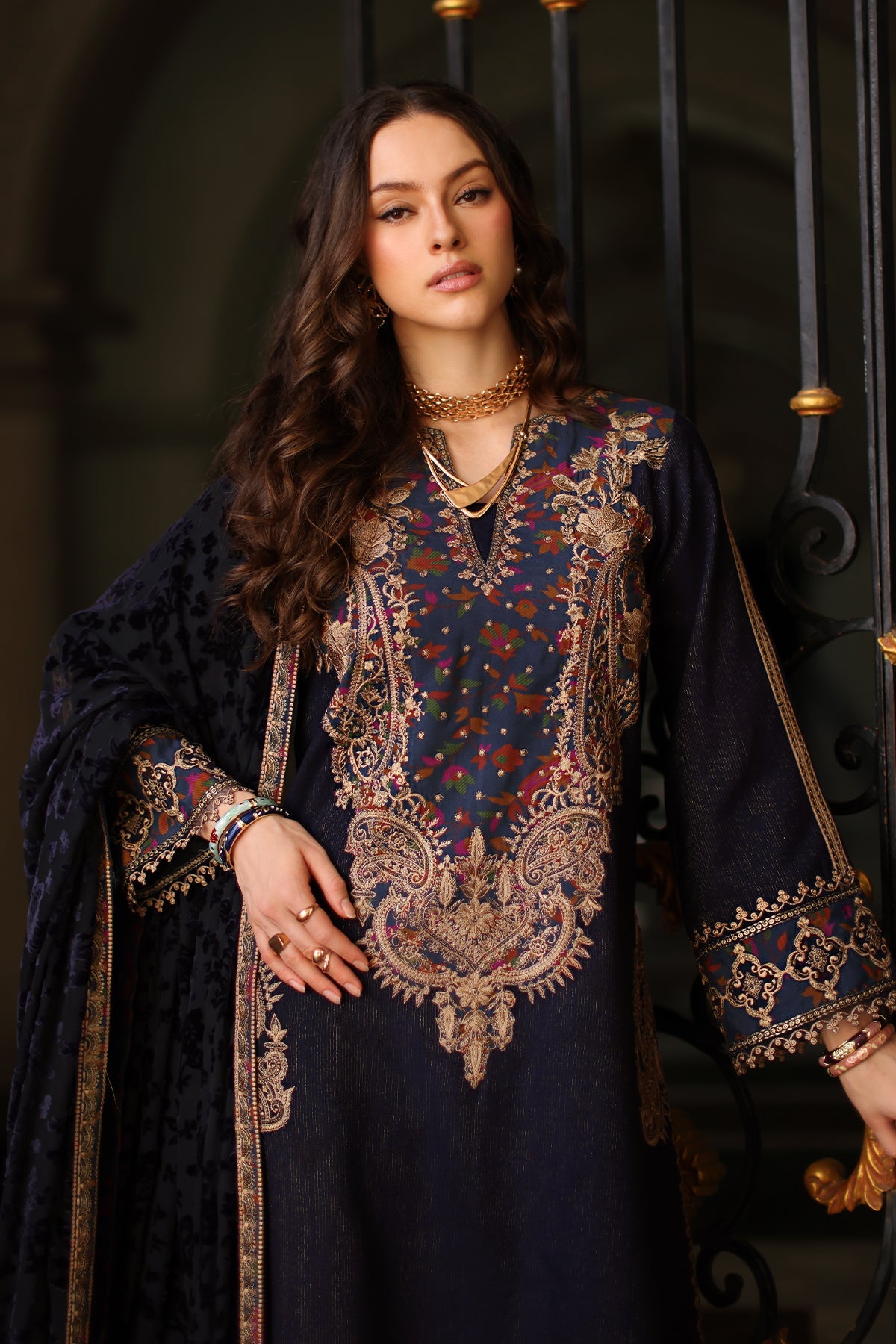 Embroidered Shawl Patti 8 Meter