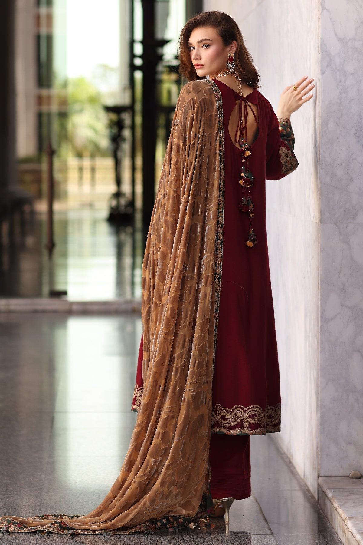 From time to time beading/ sequences may get displaced and this is not thought of as a fault but is due to the nature of the work. These articles of clothing should be worn with care.