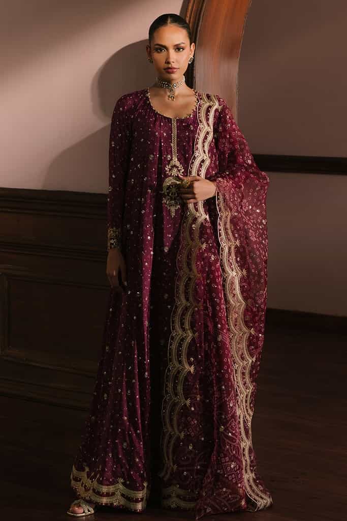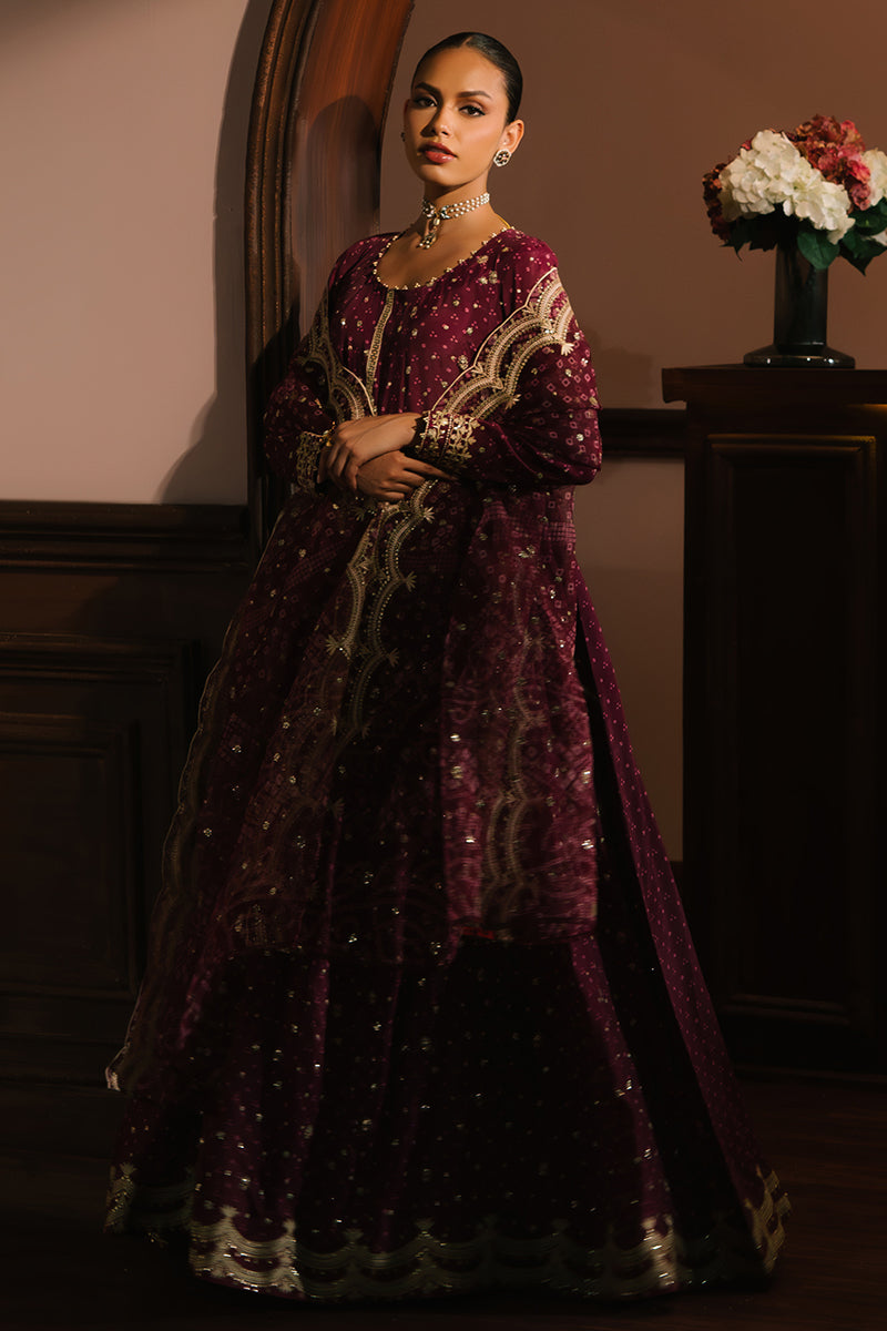 RADIANT ORCHID-3PC SILK EMBROIDERED SUIT | WEDDING UNSTITCHED | CROSS STITCH