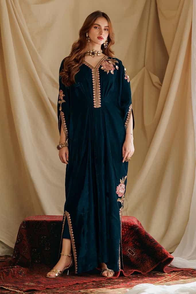 From time to time beading/ sequences may get displaced and this is not thought of as a fault but is due to the nature of the work. These articles of clothing should be worn with care.