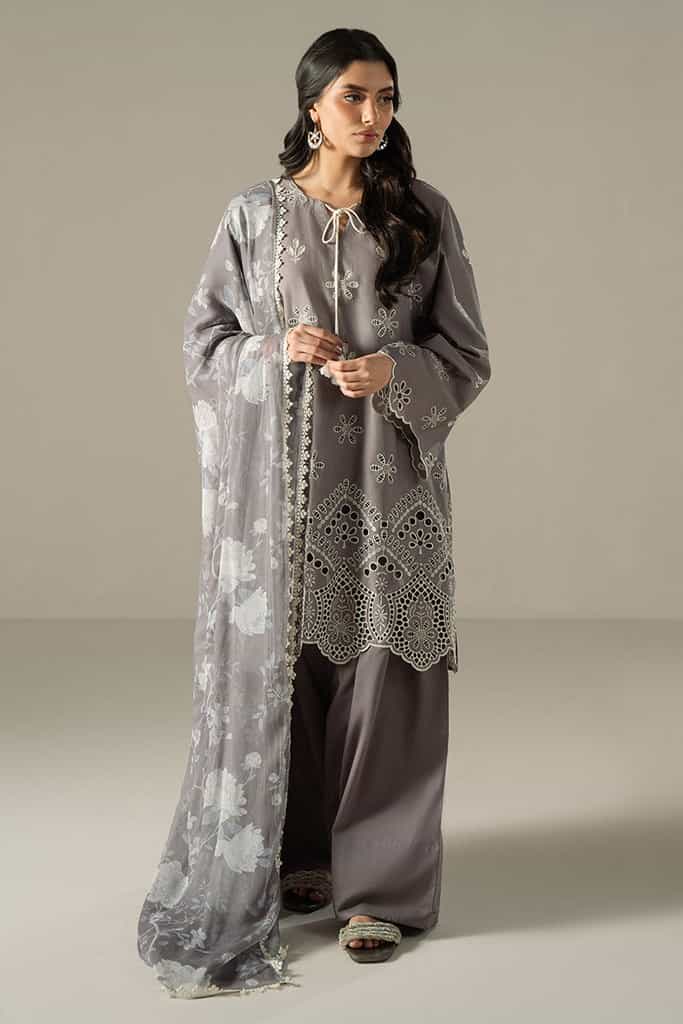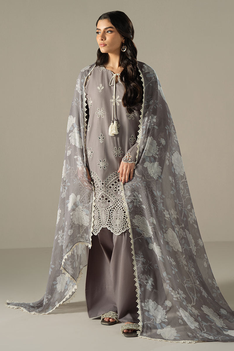 WHISPER ASH-3PC CHIKANKARI SUIT | CHIKANKARI LAWN | CROSS STITCH