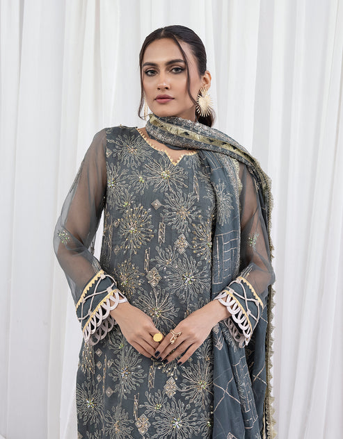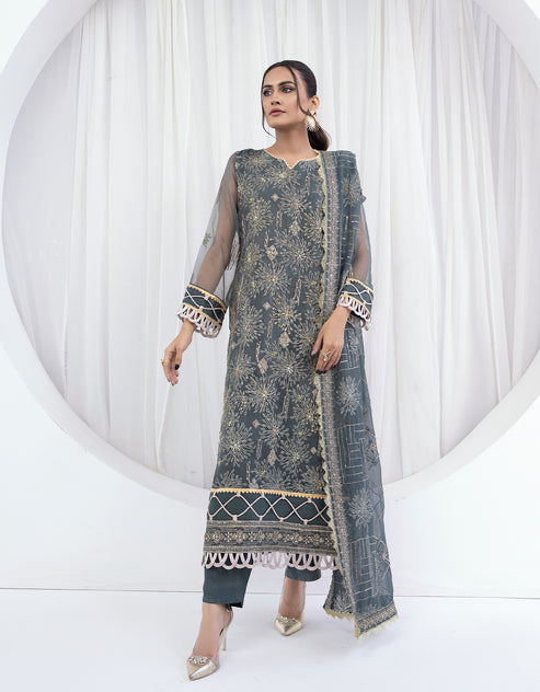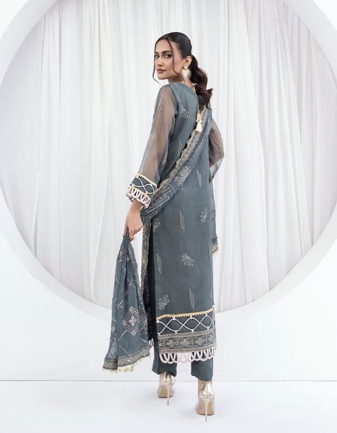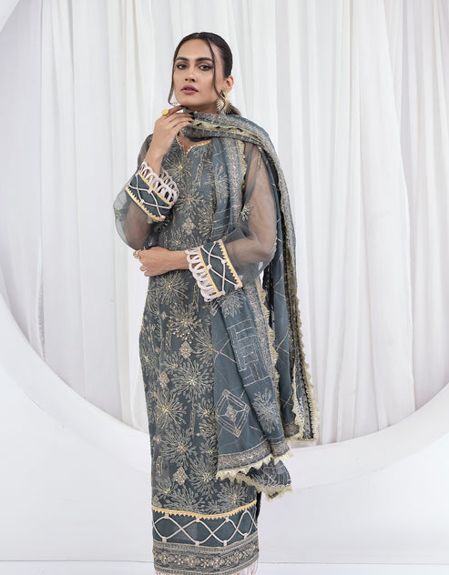 ORGANZA EMBROIDERED HAND MADE FRONT BORDER.