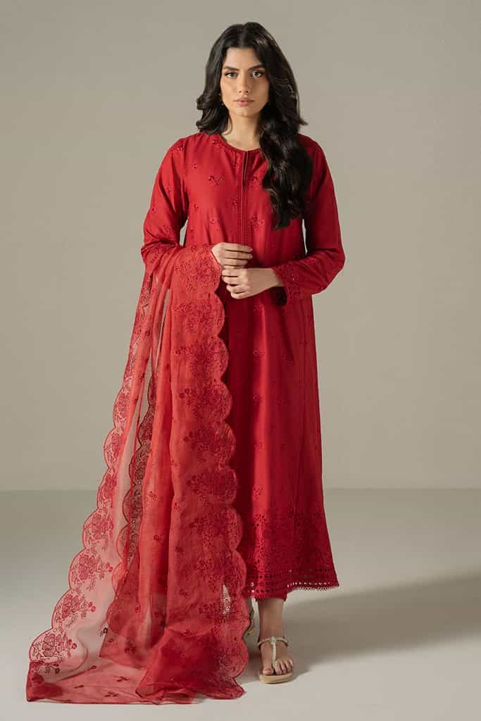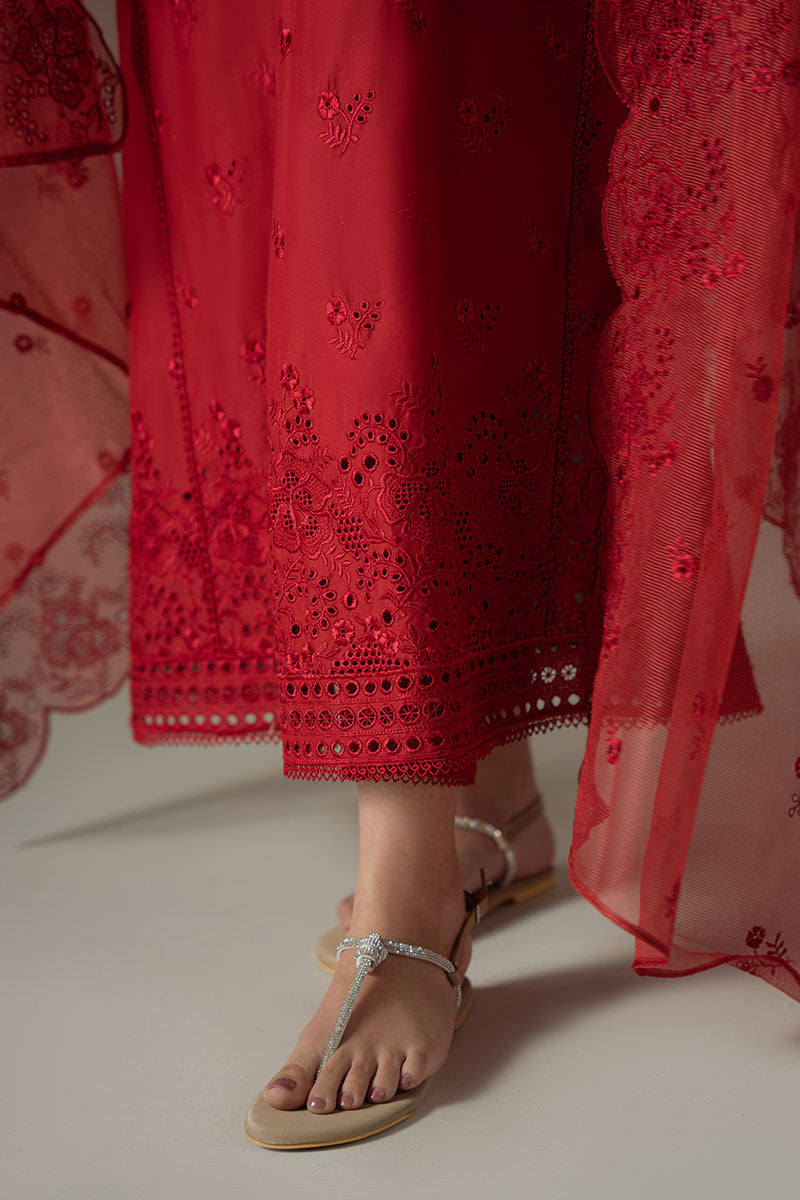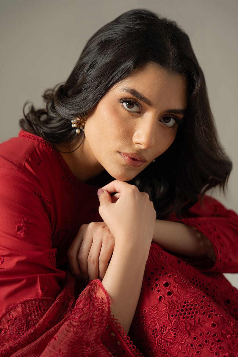 CARMINE GRIS-3PC CHIKANKARI SUIT | CHIKANKARI LAWN | CROSS STITCH