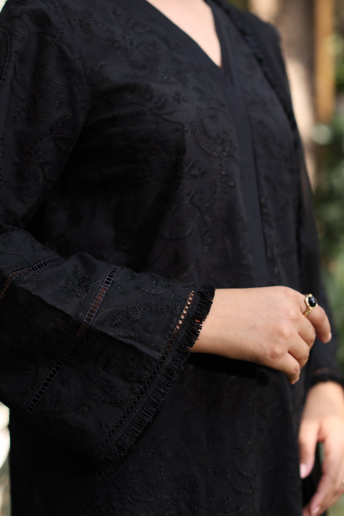 From time to time beading/ sequences may get displaced and this is not thought of as a fault but is due to the nature of the work. These articles of clothing should be worn with care.