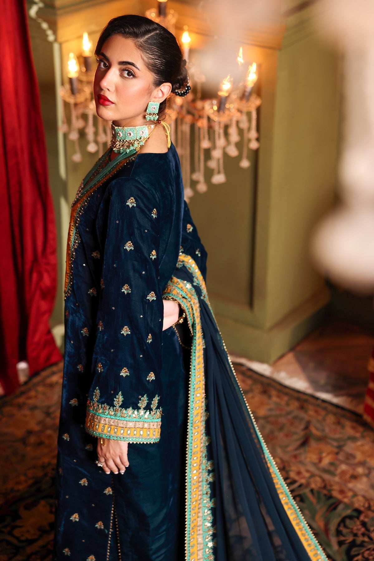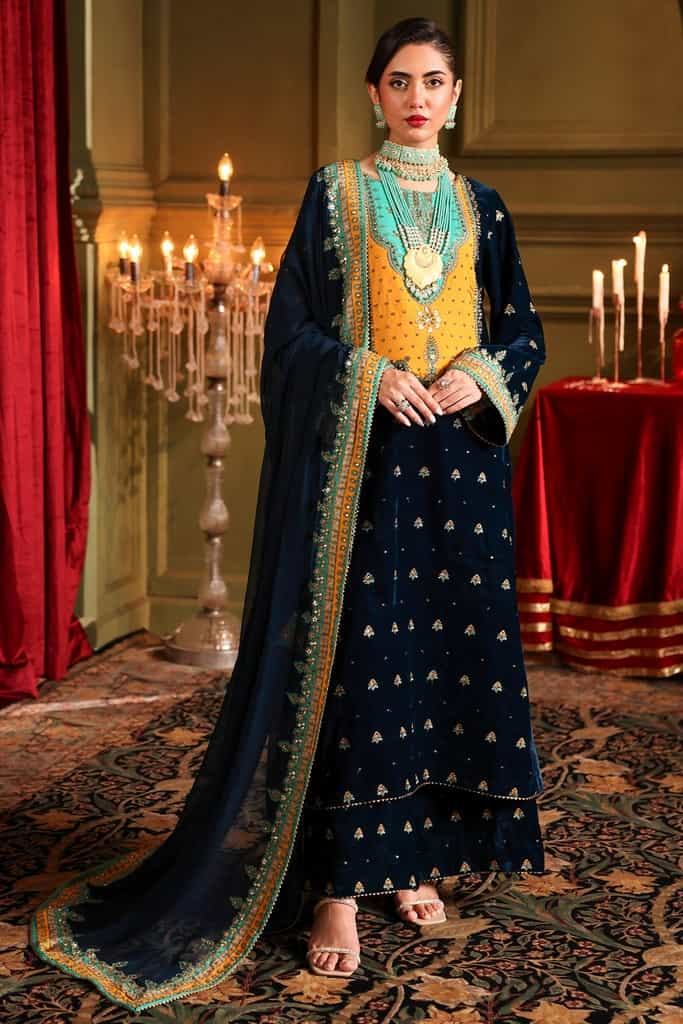 Embroidered Dyed Velvet Front & Sleeves 2 Meter