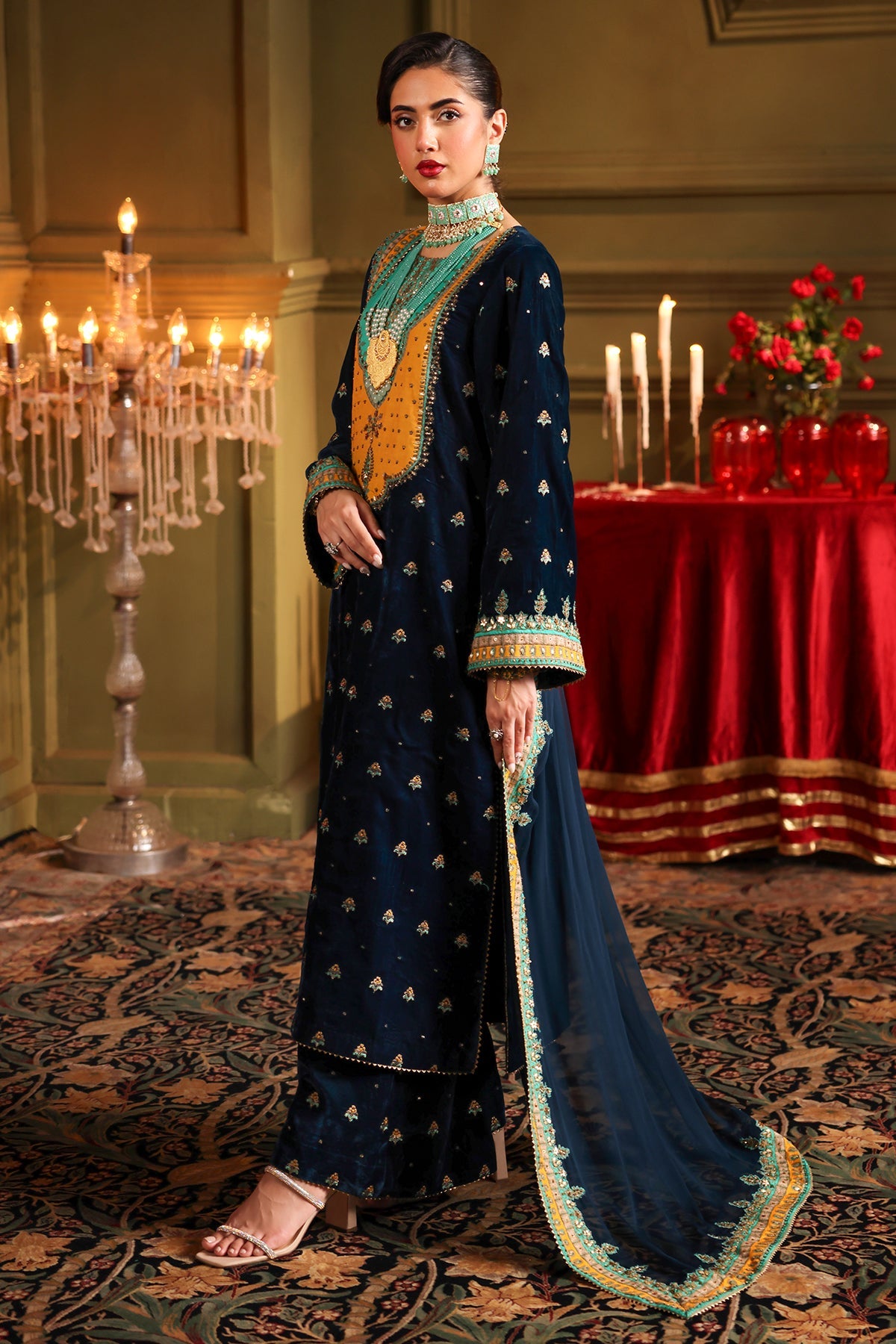 Embroidered Dyed Velvet Trouser 2.25 Meter