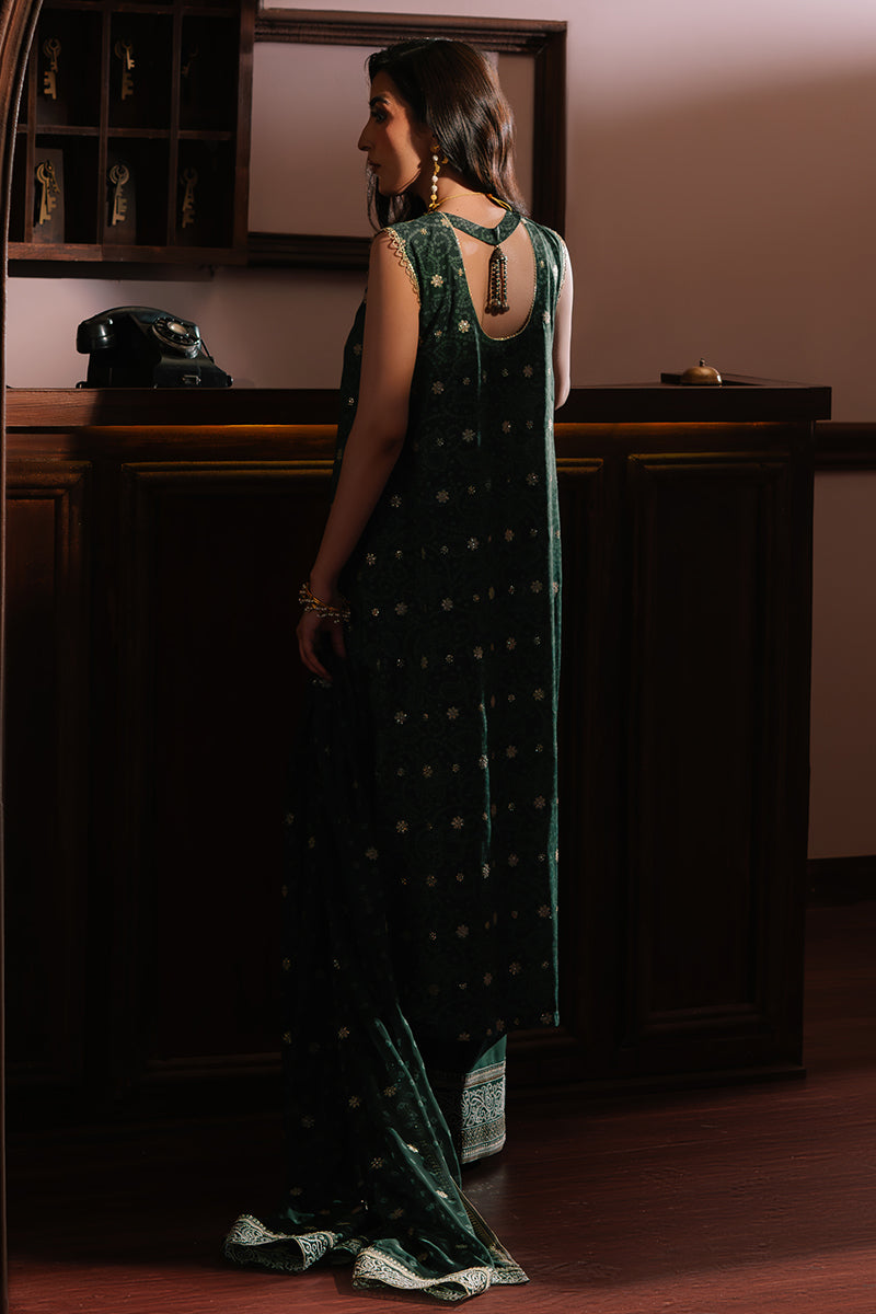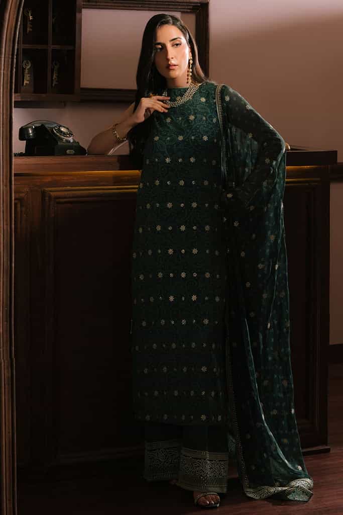 EMERALD MAJESTY-3PC SILK EMBROIDERED SUIT | WEDDING UNSTITCHED | CROSS STITCH
