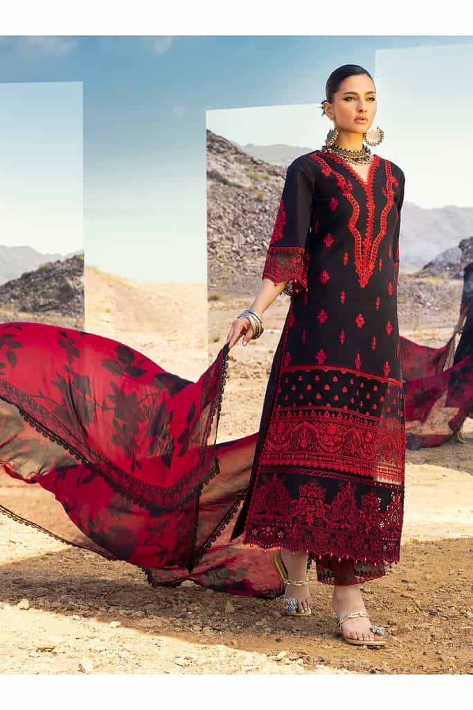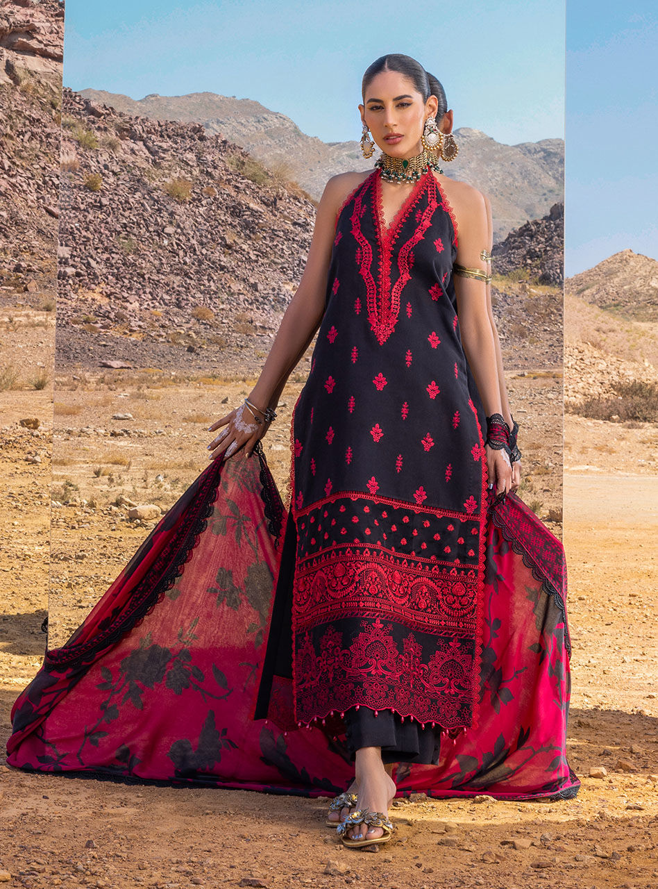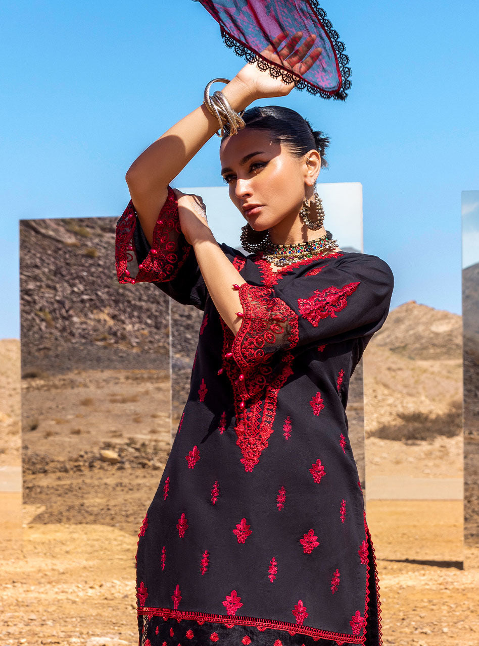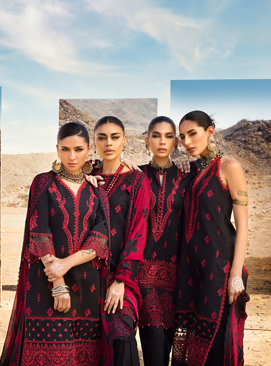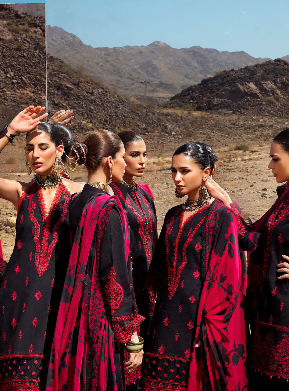 A black canvas of Mahal presents a sophisticated yet enticing chikankari set,making it a perfect addtion to your summer wardrobe.
