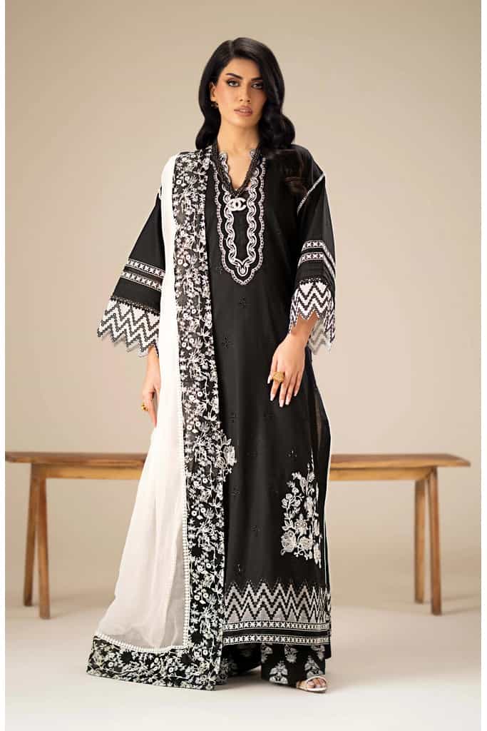 Enhance your style with the MS-24237 dress. This premium 3-piece achromatic ensemble features an embroidered Chiffon dupatta, lawn shirt, and cotton trouser. Designed for elegance, this dress will turn heads and make you feel confident and fashionable at any event.