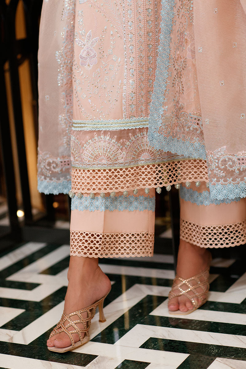 Radiate grace and poise with our peach ensemble, “Noor”, featuring delicate silver and white embellishments that lend an air of sophistication. Look effortlessly chic in this enchanting outfit that’s perfect for any occasion.