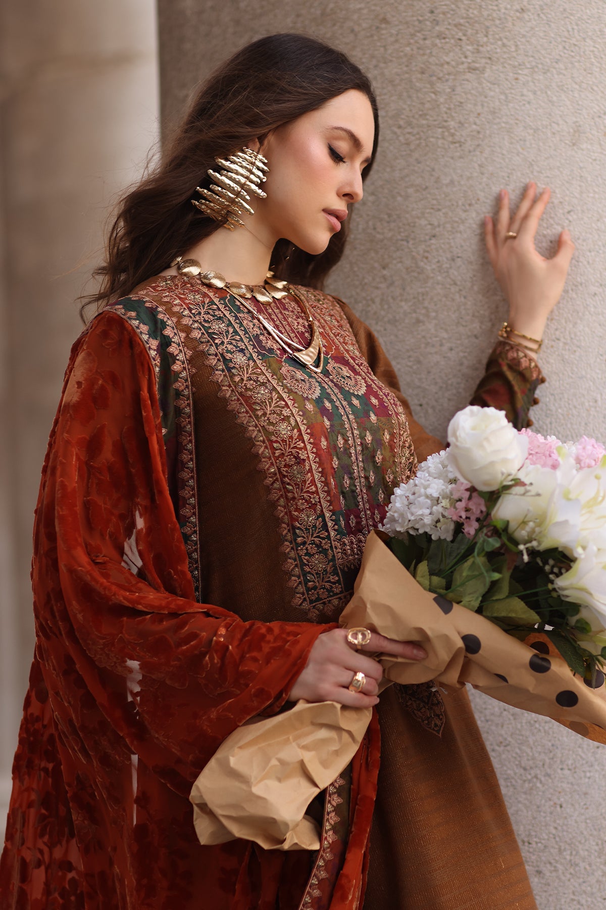 From time to time beading/ sequences may get displaced and this is not thought of as a fault but is due to the nature of the work. These articles of clothing should be worn with care.