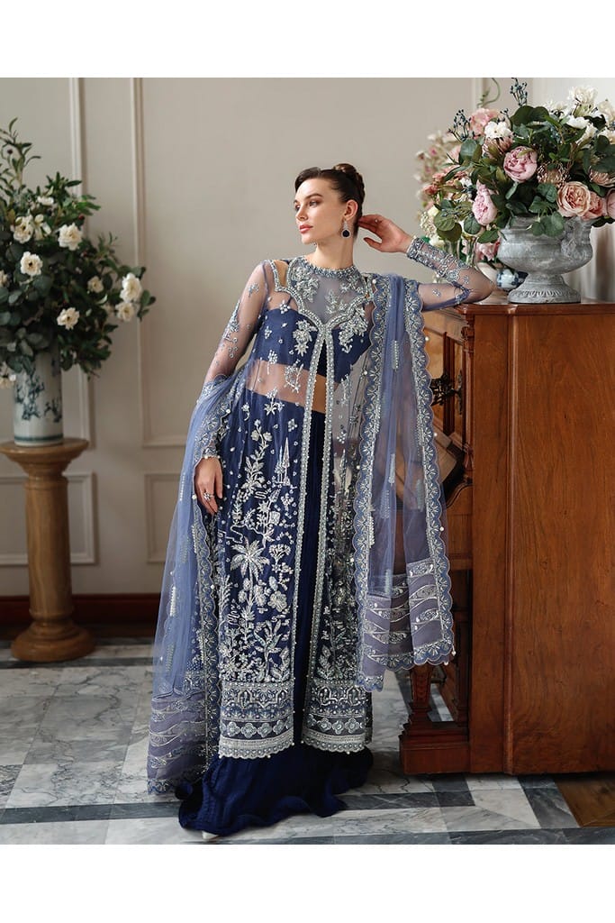 • Embroidered, sequined & hand embellished net front & side left, right panels